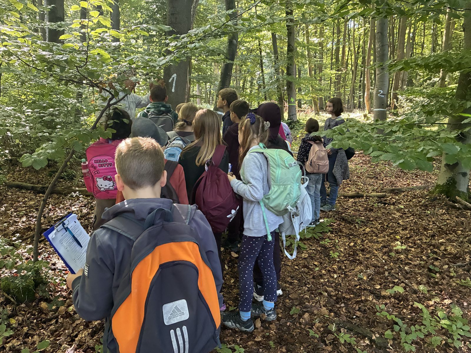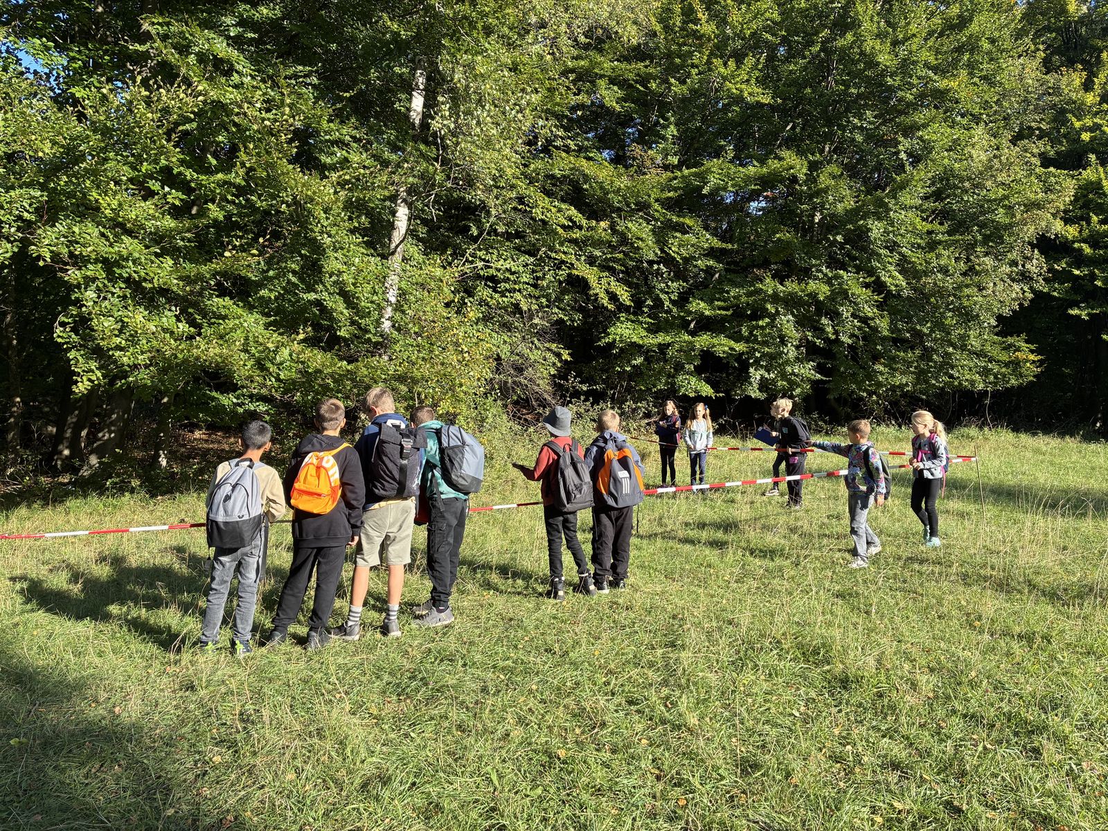 Wir (die Klasse 1c) waren mit der Klasse 1a und 1b wandern. Wir haben im grünen Raum gefrühstückt und sind dann eine Runde gewandert. Auf dem Spielplatz waren wir auch. Es war toll!